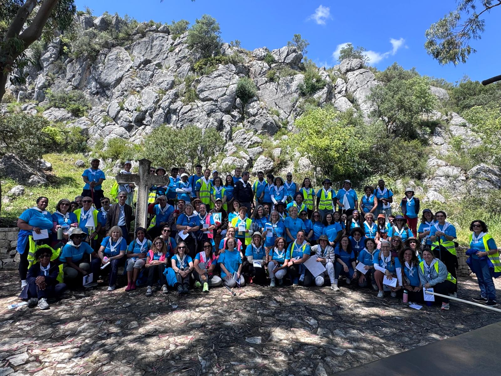 O momento mais alto e cheio de emoção foi a chegada ao Santuário, ao pé da nossa Mãe do Céu. Cada um recebeu a graça de ter chegado, alguns com o apoio do carro, outros sempre a caminhar – e não foram as bolhas ou os pés e pernas inchados que demoveram o nosso grande desejo de chegar. Chegámos todos com as mãos e o coração aberto para recebermos e acolhermos da Mãe o amor e a sua bênção.